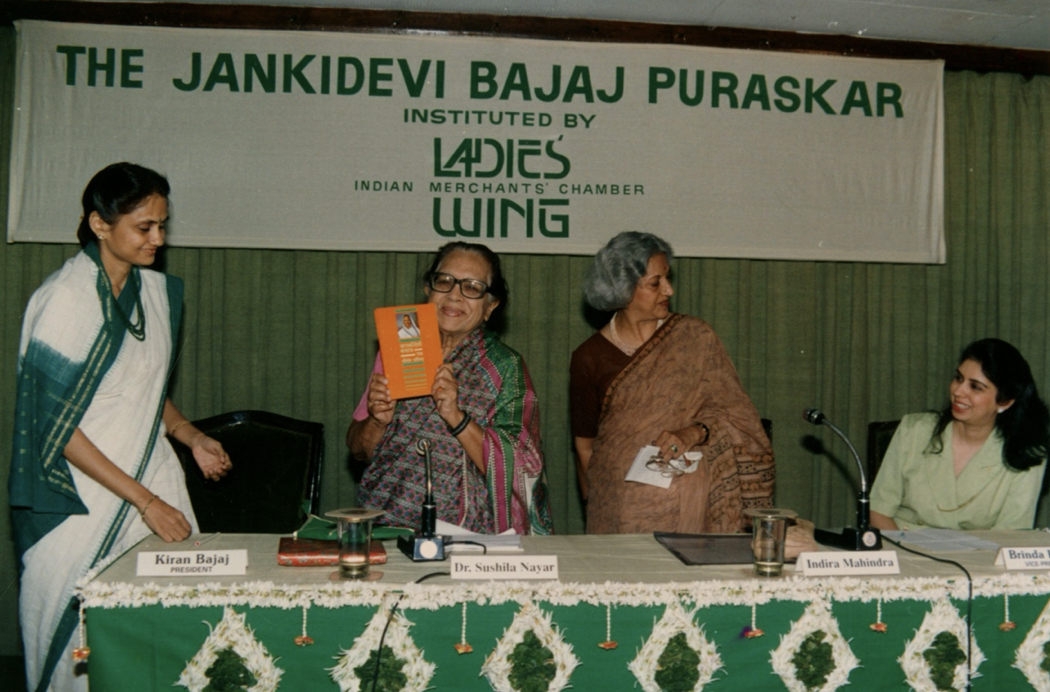 पुरस्कार वितरण समारोह : (बाएँ से दाएँ) श्रीमती प्रियदर्शिनी कानोडिया (सह-अध्यक्ष - जानकीदेवी बजाज पुरस्कार 2022 समिति), श्रीमती राधिका नाथ (अध्यक्ष - जानकीदेवी बजाज पुरस्कार 2022 समिति), श्रीमती फाल्गुनी नायर (संस्थापक एवं मुख्य कार्यकारी अधिकारी – नायका; मुख्य अतिथि), सुश्री मनीषा घुले (कार्यकारी निदेशक – नवचेतना सर्वांगीण विकास केंद्र; पुरस्कार प्राप्तकर्ता), श्रीमती रोमा सिंघानिया (अध्यक्ष – आई.एम.सी. लेडीज़ विंग), तथा श्रीमती अमृता सोमैया (उपाध्यक्ष – आई.एम.सी. लेडीज़ विंग)